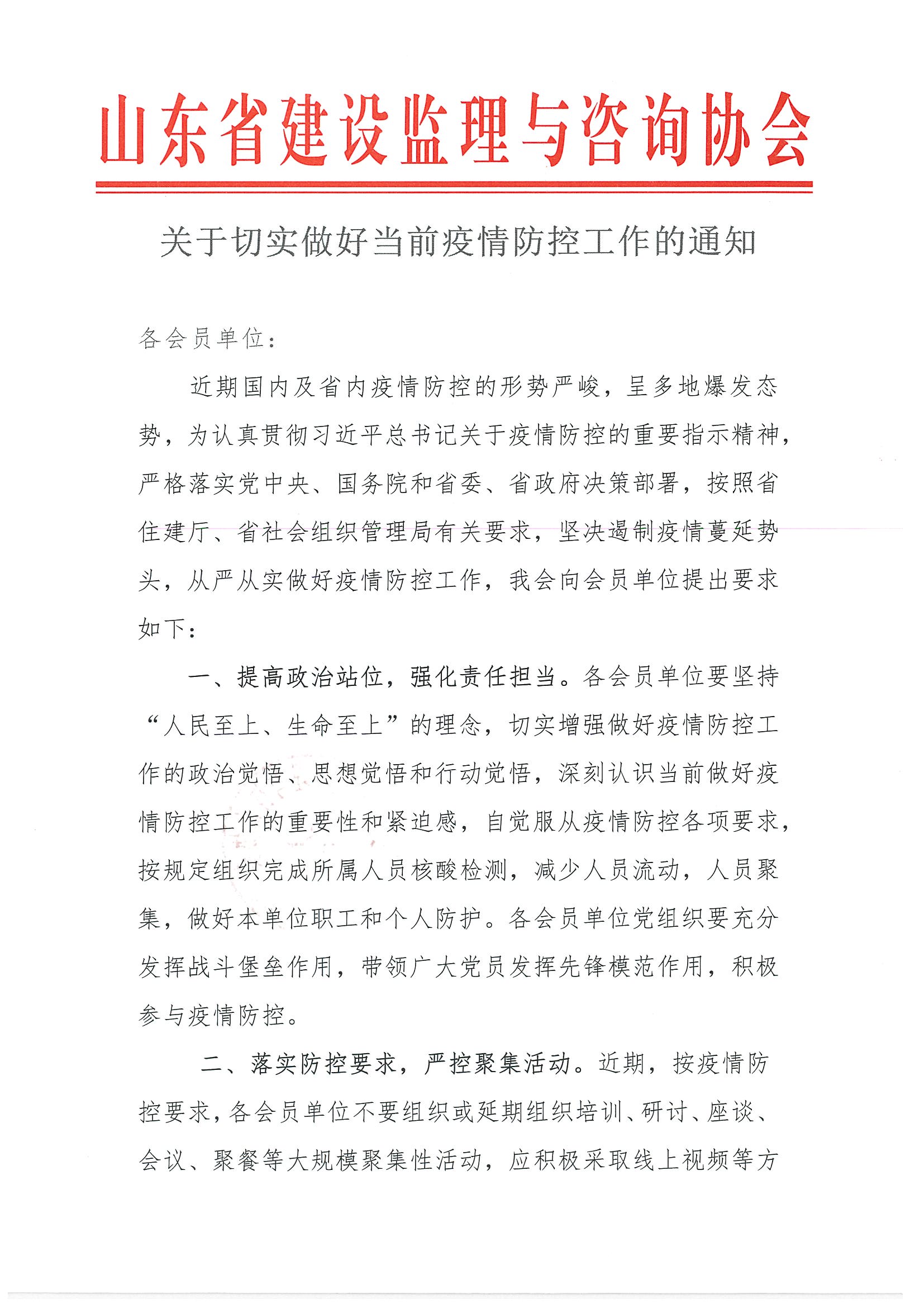 山東省建設(shè)監(jiān)理與咨詢協(xié)會(huì)關(guān)于做好疫情防控工作的通知